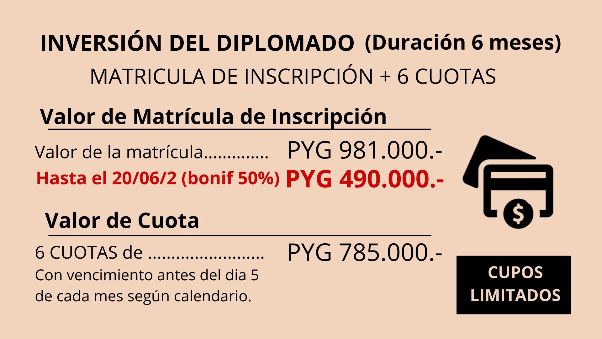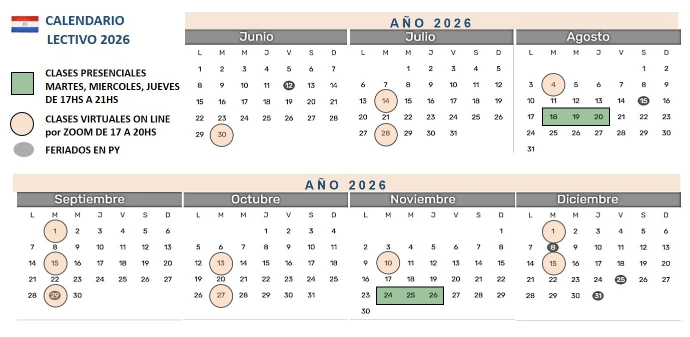 En rectángulo color verde las clases presenciales en Asunción.