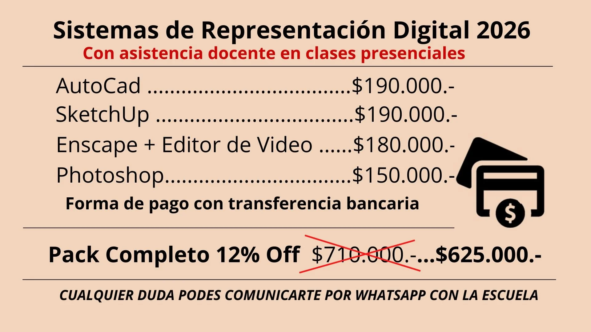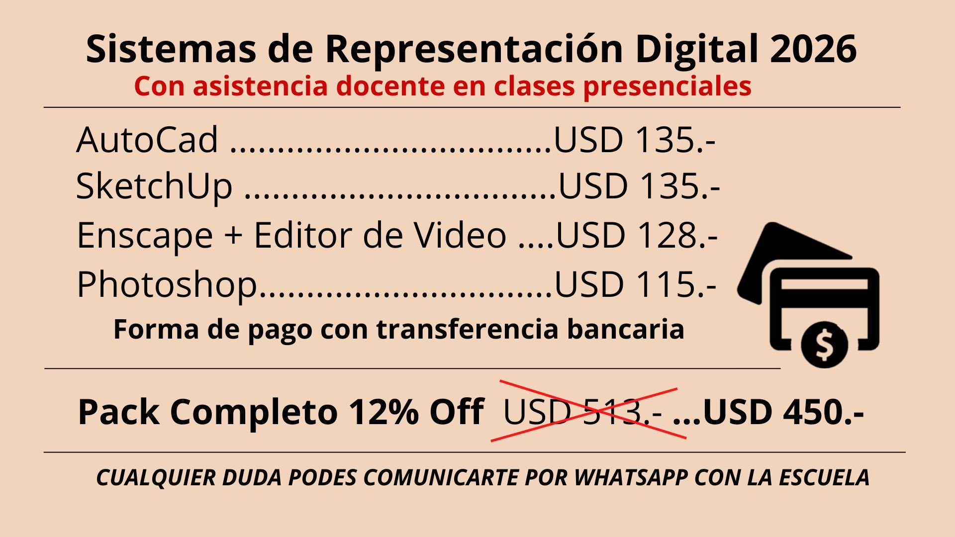 Contarás con una devolución final (optativo) de todo el proyecto que te ayudará a comprender y afianzar la metodología de trabajo aprendido (a acordar con los tiempos de devolución con la docente de la escuela). Puedes contratar además si así lo requieres, clases de consulta acordando previamente el valor y los tiempos con la escuela.